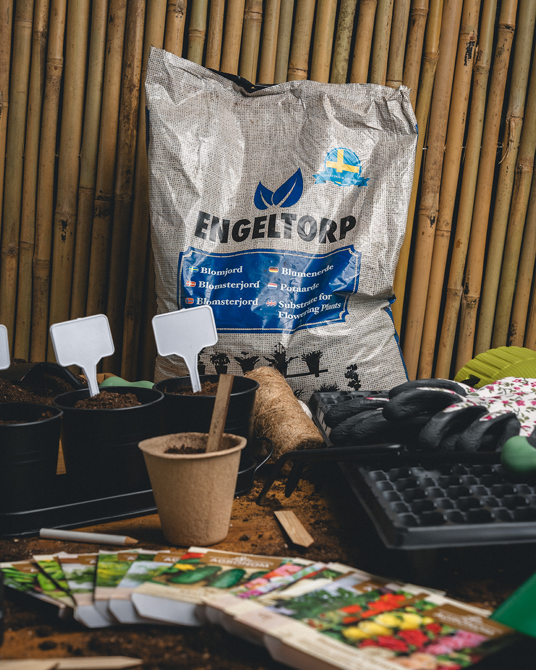 Glöm inte planteringsverktyg, handskar och växtstöd. Små detaljer som gör stor skillnad, både för plantorna och för dig.